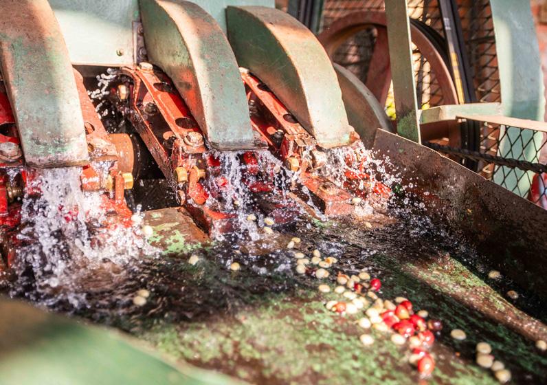 Die Verarbeitung des Rohkaffees beginnt mit dem Auslösen der beiden Kaffeebohnen aus der reifen Frucht, genannt Kirsche. Die Farbe der Kirsche wechselt nach Reifegrad von Grün zu Gelb, Hellrot bis zu Violett. Im Innern der Kaffeekirsche befinden sich 2 Samen, die Kaffeebohnen. Diese sind von einem dünnen, festhaftenden silbrigen Häutchen umgeben. Nach dem Pflücken der reifen Kirschen werden die Bohnen schnellstmöglich von den Hüllen befreit, damit das Wasser entzogen und sie damit transport- und/oder lagerfähig werden. Bei geeigneter Lagerung sind die Bohnen ein Jahr lang ohne Qualitätsverlust haltbar.